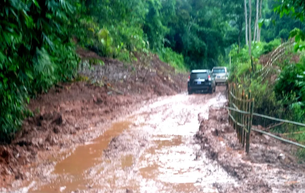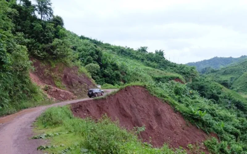 Đường lên huyện Nậm Pồ bị mưa lũ làm sạt lở, hư hỏng nhiều đoạn rất nguy hiểm