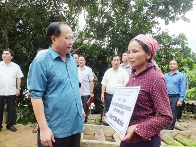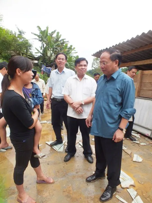 Đồng chí Tất Thành Cang và đoàn công tác tới thăm hỏi động viên một số hộ dân bị thiệt hại do mưa lũ ở xã Nà Bủng, Nậm Pồ