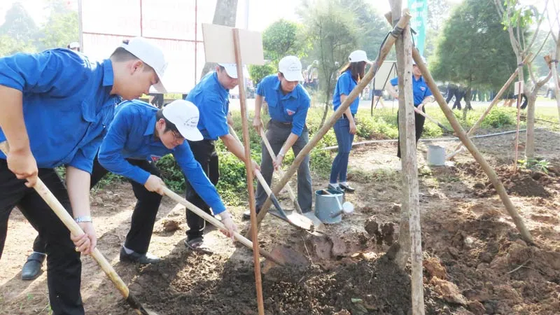 Ngay sau lễ phát động, lãnh đạo thành phố và đông đảo người dân đã tham gia trồng 216 cây xanh trong khuôn viên khu lịch sử văn hóa dân tộc thành phố.
