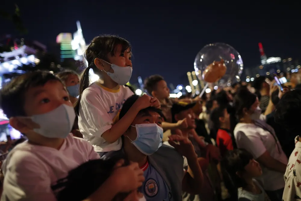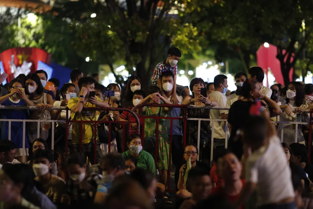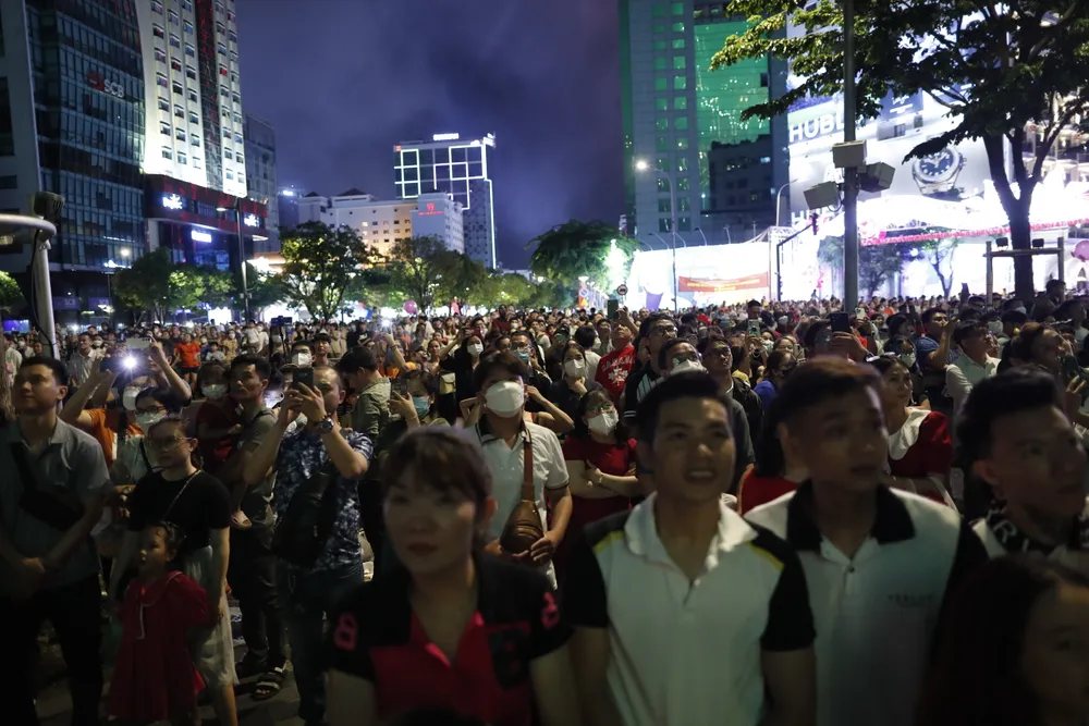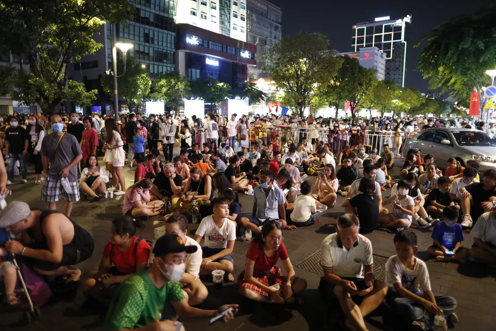 | Đông đảo người dân đổ ra trung tâm TPHCM để xem bắn pháo hoa. Ảnh: DŨNG PHƯƠNG |
