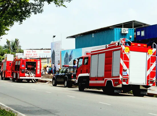 Xe cảnh sát cứu nạn cứu hộ tiếp hiện trường để cứu công nhân mắc kẹt
