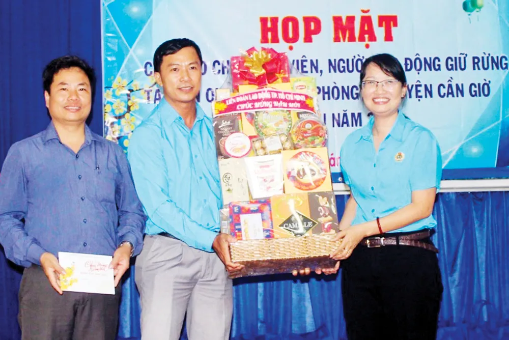 * Cùng ngày 16-1, đoàn cán bộ Công đoàn TPHCM do bà Trần Thị Diệu Thúy, Chủ tịch LĐLĐ TPHCM, làm trưởng đoàn, đã đến thăm, tặng quà tết tập thể cán bộ, công nhân viên và người lao động tại các đơn vị có môi trường làm việc khó khăn, đặc thù. Cụ thể, đoàn đã đến thăm, chúc tết Ban Quản lý rừng phòng hộ Cần Giờ; Trạm Lưu giữ thiết bị và phương tiện thủy (trực thuộc Trung tâm Quản lý đường thủy). LĐLĐ TP tặng mỗi đơn vị một phần quà tết (gồm quà trị giá 3 triệu đồng và 5 triệu đồng tiền mặt); tặng 156 phần quà (1,2 triệu đồng/phần) cho người lao động và các hộ dân giữ rừng.