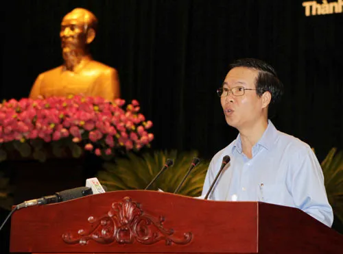 Phó Bí thư Thường trực Thành ủy TPHCM Võ Văn Thưởng phát biểu khai mạc hội nghị. Ảnh: DŨNG PHƯƠNG