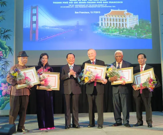 * Chiều cùng ngày (giờ Việt Nam), tại Tòa Thị chính thành phố San Francisco đã diễn ra Lễ kỷ niệm 20 năm ký kết thỏa thuận quan hệ hữu nghị giữa TPHCM và thành phố San Francisco.