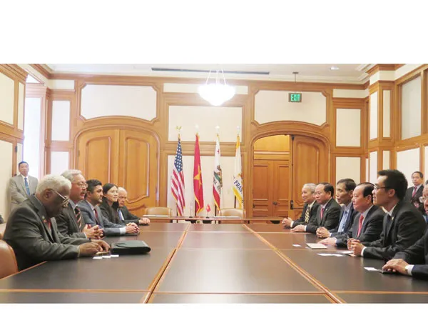 (SGGPO).- Sáng 14-7 (giờ Việt Nam), tại Tòa Thị chính thành phố San Francisco, Hoa Kỳ đã diễn ra hội đàm nhân dịp kỷ niệm 20 năm thiết lập quan hệ hữu nghị TPHCM - San Francisco giữa đoàn đại biểu TPHCM do đồng chí Lê Thanh Hải, Ủy viên Bộ Chính Trị, Bí Thư Thành ủy TPHCM dẫn đầu và đoàn đại biểu thành phố kết nghĩa San Francisco do Thị trưởng Edwin Lee dẫn đầu.