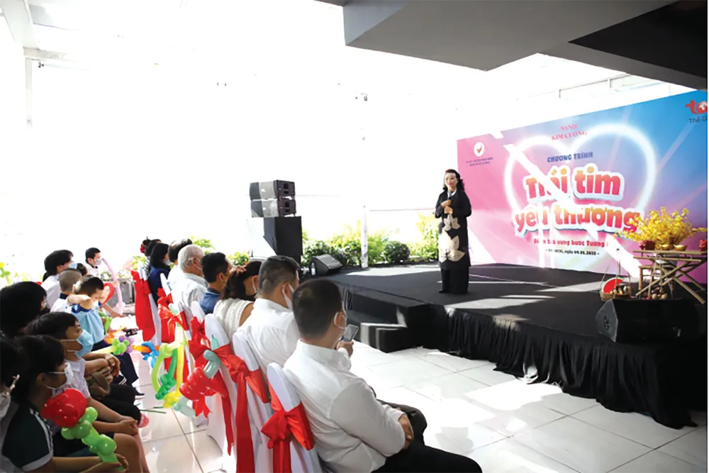 Với mục đích xoa dịu những nỗi đau và tiếp thêm nghị lực cho các bé, Hội Bảo trợ bệnh nhân nghèo TP. HCM kết hợp cùng kênh truyền hình TodayTV và đại diện nhà tài trợ NSND Kim Cương tổ chức chương trình thiện nguyện Trái tim yêu thương với thông điệp Điểm tựa vững bước tương lai. Tại sự kiện, chương trình trao quà Tết cho 80 bé có hoàn cảnh đặc biệt, mồ côi do dịch Covid-19, đồng thời hỗ trợ các bé với mức hỗ trợ là 2.000.000đồng/tháng/bé cho đến năm 18 tuổi. Thông qua đó, chương trình mong muốn giúp các bé từng bước khỏa lấp phần nào những trống vắng về mặt tình cảm, chuẩn bị hành trang cho bước đường học tập phía trước và chắp cánh những ước mơ còn dang dở.