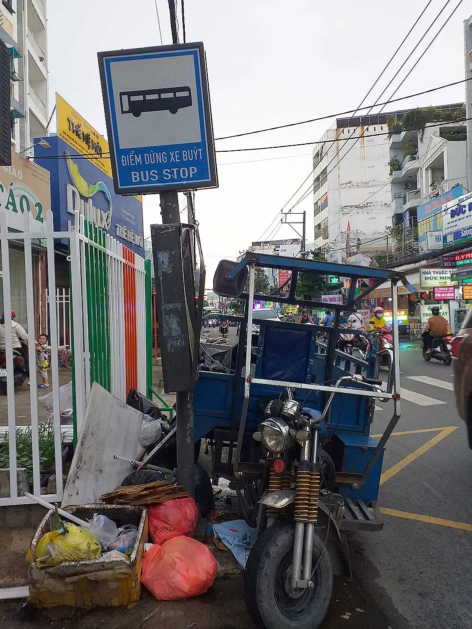 Một trạm xe buýt trên đường Tân Kỳ Tân Quý, phía trước Nhóm nhà trẻ Cây Táo (phường Tân Sơn Nhì, quận Tân Phú, TPHCM) lâu nay luôn bị một chiếc xe ba bánh chở hàng đậu sát chiếm hết vỉa hè, cùng rác thải và vô số thứ rác vứt bỏ ngổn ngang (ảnh).