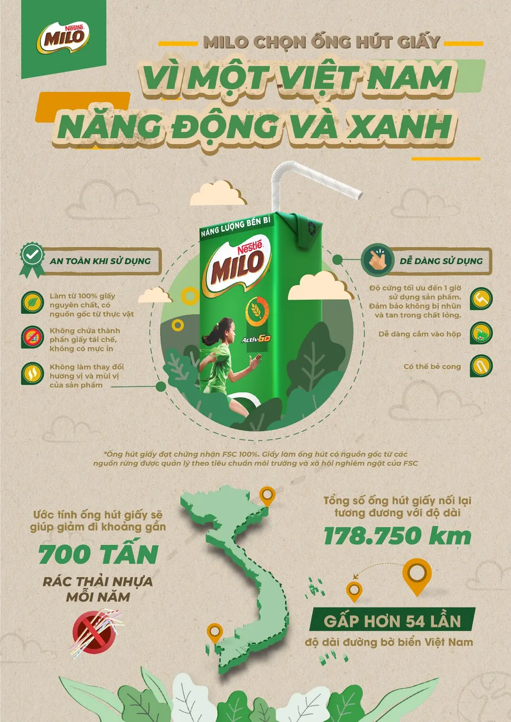 Tại Việt Nam, chỉ mới một số ít doanh nghiệp cho thấy động thái tích cực khi lên kế hoạch áp dụng các giải pháp thân thiện hơn với môi trường trong hoạt động vận hành và sản xuất. Nhãn hàng Nestlé MILO, “ông lớn” trong ngành dinh dưỡng và thực phẩm, bắt đầu thử nghiệm sử dụng ống hút giấy cho dòng sản phẩm MILO Bữa Sáng từ tháng 3-2020, thay cho ống hút nhựa thông thường. Kể từ tháng 05-2021, nhãn hàng chính thức chuyển đổi sang ống hút giấy trên toàn bộ các sản phẩm uống liền. Theo kế hoạch, nhãn hàng sẽ hoàn thành chuyển đổi ít nhất 90% sản lượng sản xuất dùng ống hút giấy vào cuối năm 2021, và hoàn thành chuyển đổi 100% sang ống hút giấy vào tháng 05-2022.