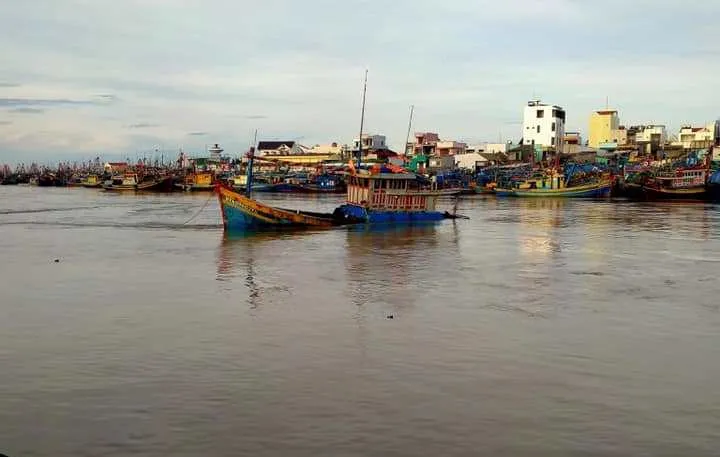 Khi thủy triều đang xuống, lại kết hợp lũ quét nên nhiều tàu cá không thể di chuyển ra biển để tránh lũ.