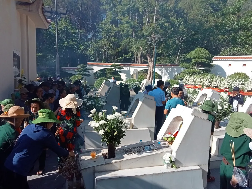 Đông đảo người dân thập phương đến dâng hoa, dâng hương tại khu mộ 10 nữ anh hùng liệt sĩ thanh niên xung phong Ngã ba Đồng Lộc |