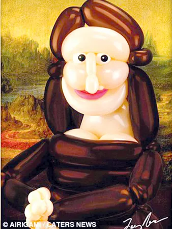 Larry Moss, một nhà ảo thuật ở New York, đã “vẽ” lại các bức tranh nổi tiếng thế giới bằng chất liệu bóng bay (ảnh).