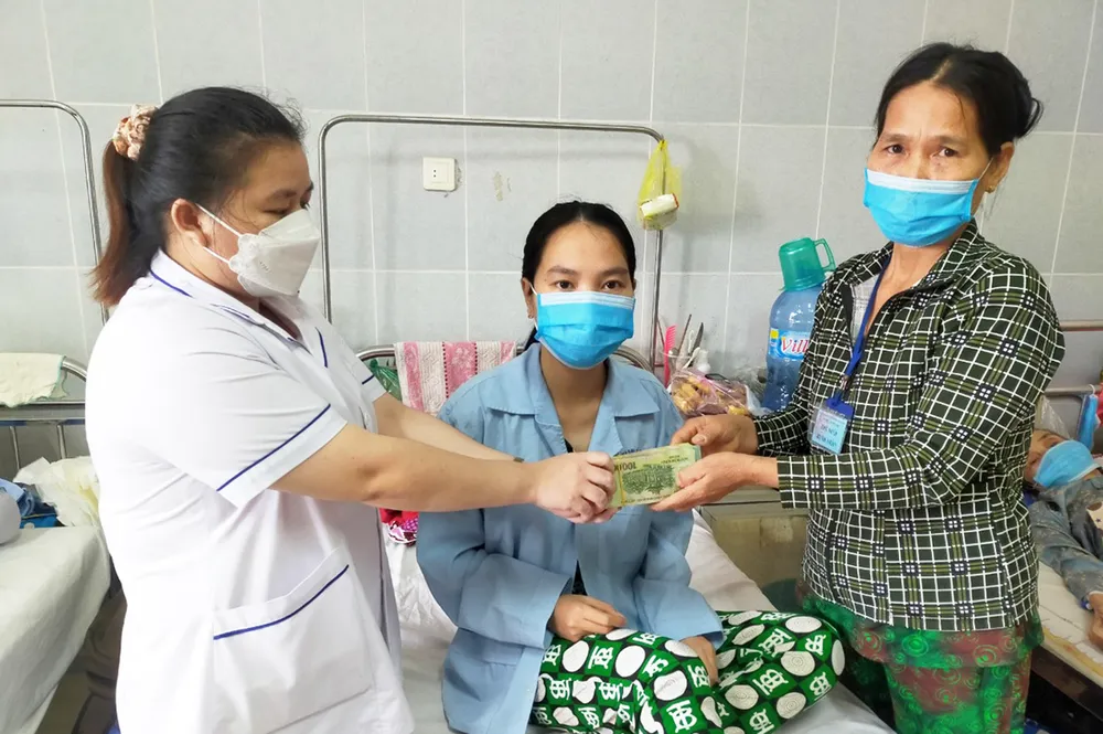Tại Bệnh viện Chỉnh hình và Phục hồi chức năng Quy Nhơn, đại diện Báo SGGP đã thăm hỏi, trao tận tay số tiền 27 triệu đồng cho bà Nguyễn Thị Báu (56 tuổi) – mẹ của em Nguyễn Thị Diệp (SN 1996, ở thôn An Cửu, xã Phước Hưng, huyện Tuy Phước, tỉnh Bình Định), nhân vật trong bài “Bác sĩ trẻ, nhà nghèo, bị đột quỵ”, đăng trên Báo SGGP, số ra ngày 2-11-2021.