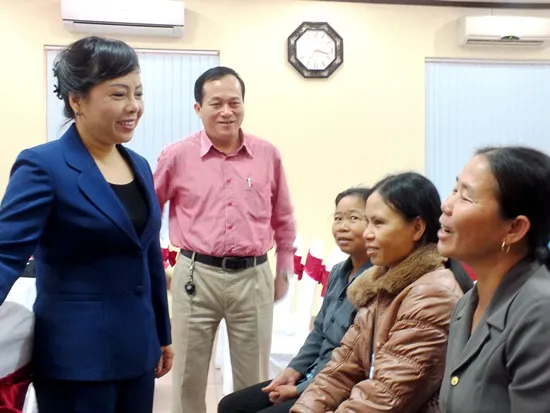 Bộ trưởng Y tế trò chuyện với phụ nữ nghèo ở tỉnh Thanh Hóa về việc tham gia BHYT. Ảnh: Quốc Khánh
