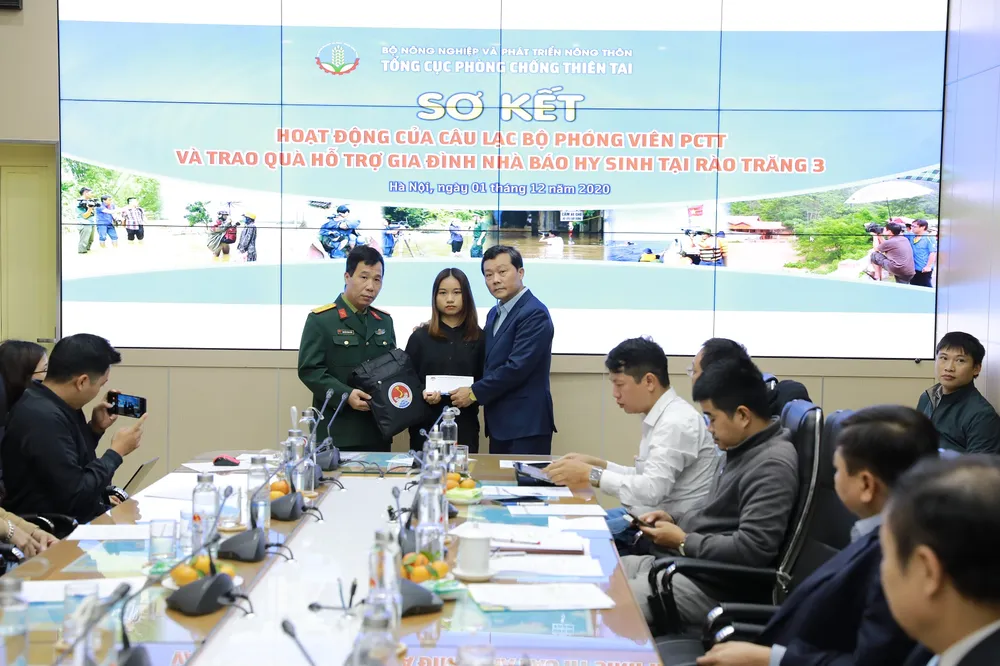 Trưa 1-12, tại trụ sở Bộ NN-PTNT (Hà Nội), Tổng cục Phòng chống thiên tai và Câu lạc bộ Phóng viên phòng chống thiên tai đã tổ chức trao 50 triệu đồng từ tiền quyên góp để ủng hộ gia đình nhà báo Phạm Văn Hướng, người đã hy sinh khi tham gia lực lượng cứu hộ ở dự án thủy điện Rào Trăng 3, tỉnh Thừa Thiên- Huế trong đợt mưa lũ tháng 10 vừa qua.