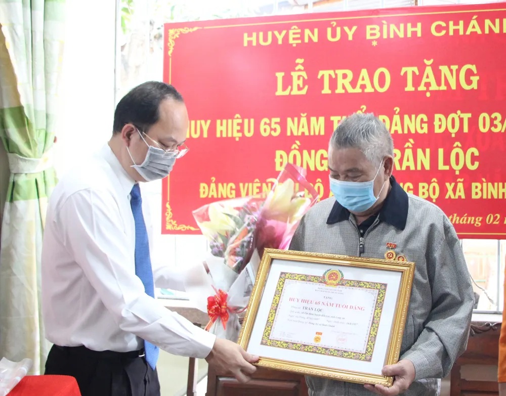Trong sáng 2-2, Quận ủy quận Tân Phú tổ chức trao Huy hiệu Đảng đợt 3-2 cho 84 đảng viên cao tuổi Đảng.