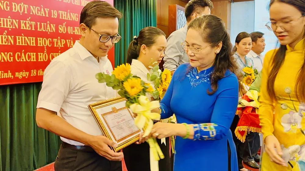 | Các tập thể, cá nhân điển hình học tập và làm theo tư tưởng, đạo đức, phong cách Hồ Chí Minh năm 2023 được khen thưởng. Ảnh: CHÍ THẠCH |
