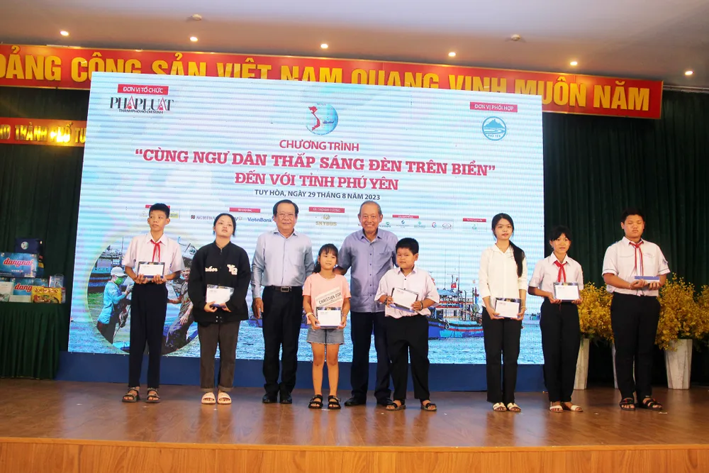 Dịp này, Chương trình "Cùng ngư dân thắp sáng đèn trên biển" của Báo Pháp Luật TPHCM đã trao tặng 200 phần quà, mỗi phần trị giá hơn 4 triệu đồng cho 200 hộ ngư dân trên địa bàn tỉnh Phú Yên. Đồng thời, tặng 25 suất học bổng cho con em ngư dân có hoàn cảnh khó khăn, vượt khó học giỏi với mỗi suất học bổng gồm 2 triệu đồng tiền mặt và tập vở, dụng cụ học tập, balo học sinh…