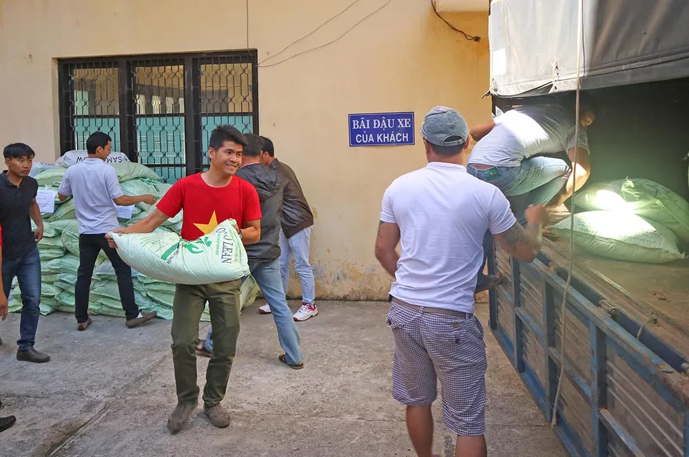 Thành viên Hiệp hội Hoa Đà Lạt chuyển quà tặng lên xe để gửi tặng các chiến sĩ, nhân dân trên quần đảo Trường Sa. Ảnh: ĐOÀN KIÊN