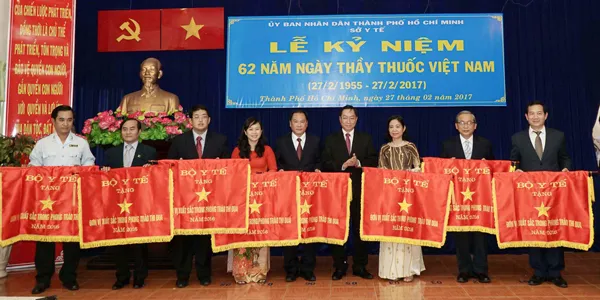 (SGGPO).- Sáng 27-2, tại lễ kỷ niệm 62 năm Ngày thầy thuốc Việt Nam (27-2-1955 – 27-2-2017) do Sở Y tế TPHCM tổ chức, nhiều cá nhân và tập thể xuất sắc có cống hiến lớn cho ngành y tế trong năm qua đã được trao tặng những phần thưởng cao quý của Chủ tịch nước, Chính phủ, Bộ Y tế và TPHCM.