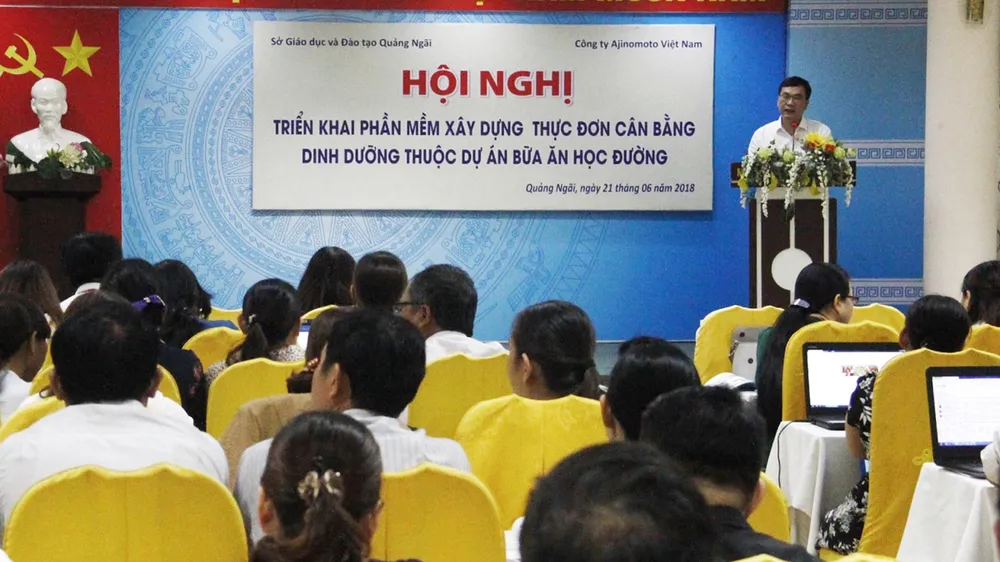 Ngày 21-6-2018, hội nghị triển khai “Phần mềm xây dựng thực đơn cân bằng dinh dưỡng” được tổ chức dưới sự phối hợp của Sở Giáo dục và Đào tạo (GDĐT) tỉnh Quảng Ngãi, cùng Công ty Ajinomoto Việt Nam, dành cho 53 trường tiểu học có tổ chức bữa ăn bán trú trên toàn địa bàn tỉnh Quảng Ngãi.