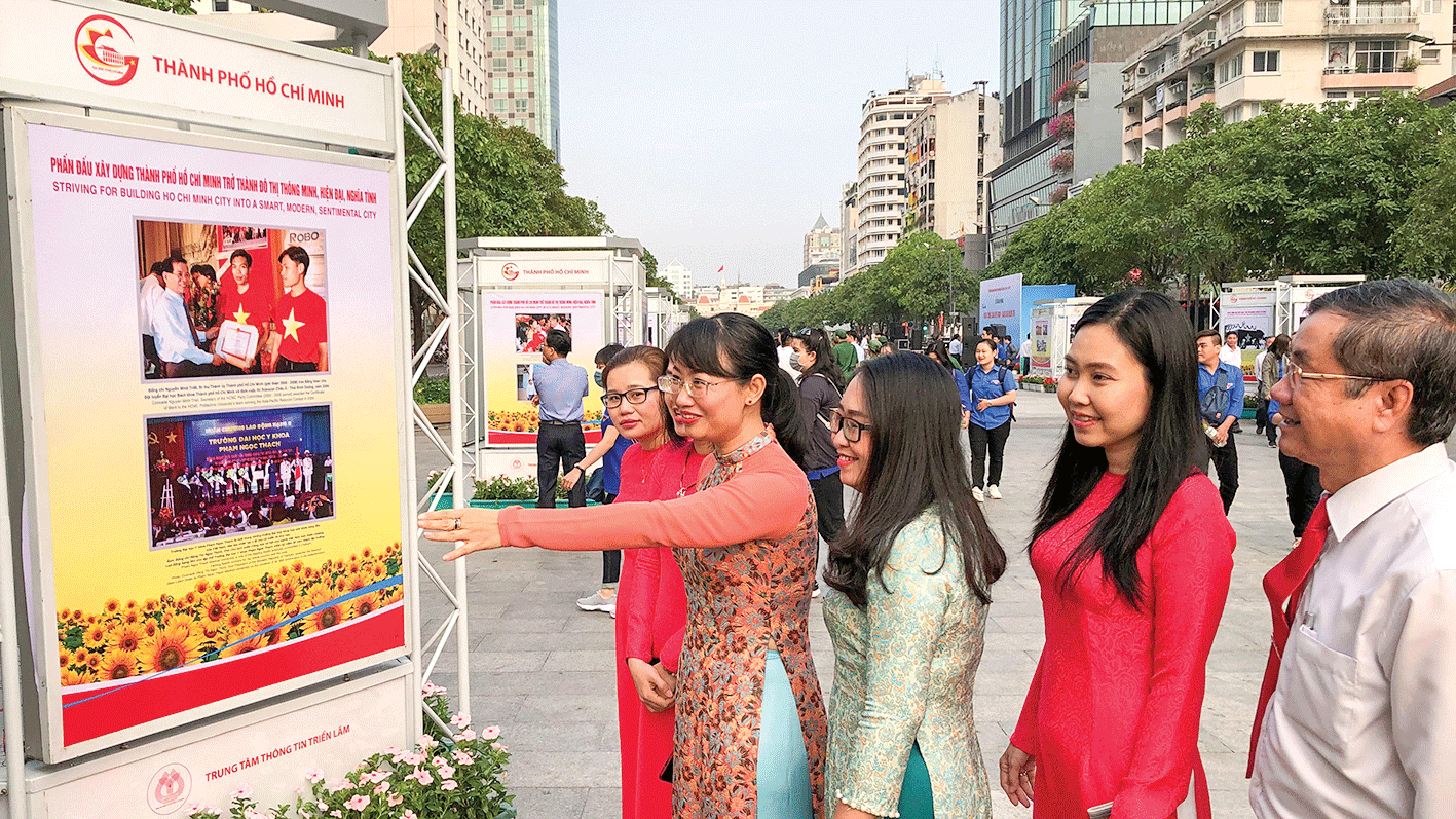 Triển lãm diễn ra đến hết ngày 15-2, trưng bày 300 ảnh giới thiệu khái quát các mốc lịch sử quan trọng của đất nước gắn liền với quá trình xây dựng và trưởng thành của Đảng Cộng sản Việt Nam; các sự kiện, thành tựu tiêu biểu của cả nước trong quá trình đổi mới, phát triển và hội nhập; hoạt động giao lưu, hợp tác với các nước trong khu vực và trên thế giới; các công trình nổi bật của Việt Nam có giá trị đột phá trong thời kỳ đổi mới như: Đường Hồ Chí Minh, Đường dây 500KV Bắc - Nam, Nhà máy Thủy điện Hòa Bình, cầu Nhật Tân… Triển lãm cũng phản ánh những thành tựu tiêu biểu về kinh tế, văn hóa, xã hội của TPHCM trong hơn 40 năm qua đã góp phần quan trọng vào sự nghiệp đổi mới và thành tựu chung của cả nước; các hoạt động hướng đến xây dựng TPHCM trở thành đô thị thông minh; một số công trình lớn, quy mô trên địa bàn thành phố góp phần quan trọng trong phát triển kinh tế - xã hội, xây dựng đô thị, thể hiện sức sống vươn lên của TPHCM trong xu thế hội nhập với thế giới.