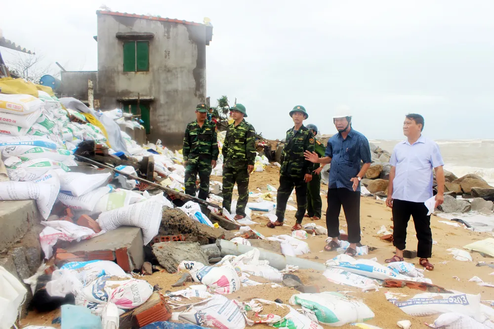 Hiện, vẫn còn 11 hộ quay lại để bám trụ để giữ tài sản, trong khi sóng biển, triều cường càng lúc càng mạnh hơn.