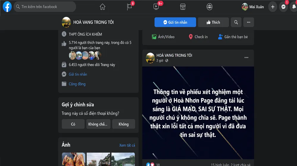 Theo đó, vào 7 giờ 15 phút ngày 4-5, T. là chủ tài khoản facebook Nguyen Van Thuan, đã đăng tải một bản xét nghiệm SARS-CoV-2 giả lên fanpage Hòa Vang Trong Tôi.