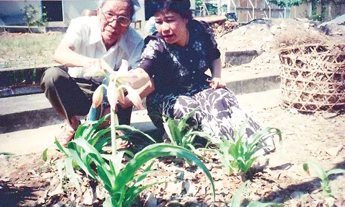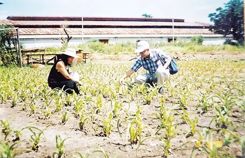 PGS.TSKH Trần Công Khánh cùng với TS.DS Nguyễn Thị Ngọc Trâm theo dõi cây TNHC vào năm 1998 tại trại dược liệu của chúng tôi.