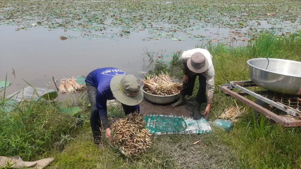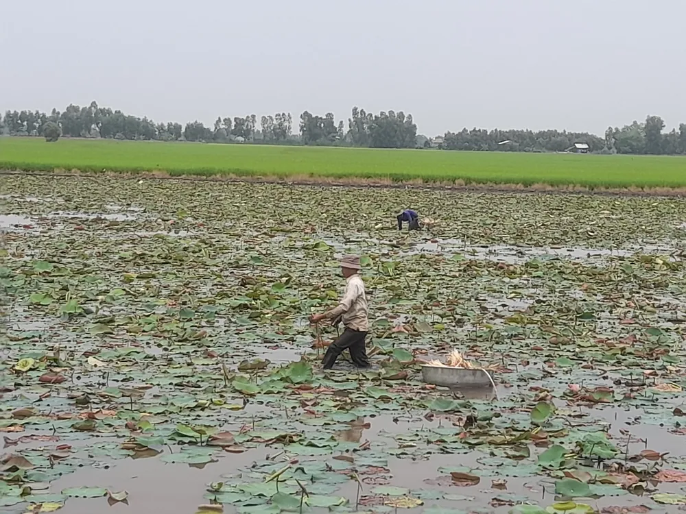 | Ngoài trồng lúa chất lượng cao thì trồng sen lấy ngó, lấy gương là kinh tế chính cho các hộ dân có đất canh tác thuộc vùng trũng, ngập ở huyện Tân Thạnh- Long An |