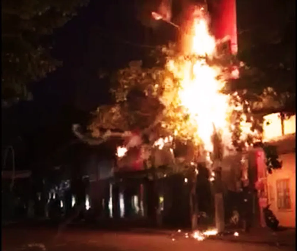 Ngọn lửa bốc lên rồi nhanh chóng lan sang các đường dây dẫn điện, cáp viễn thông lân cận…