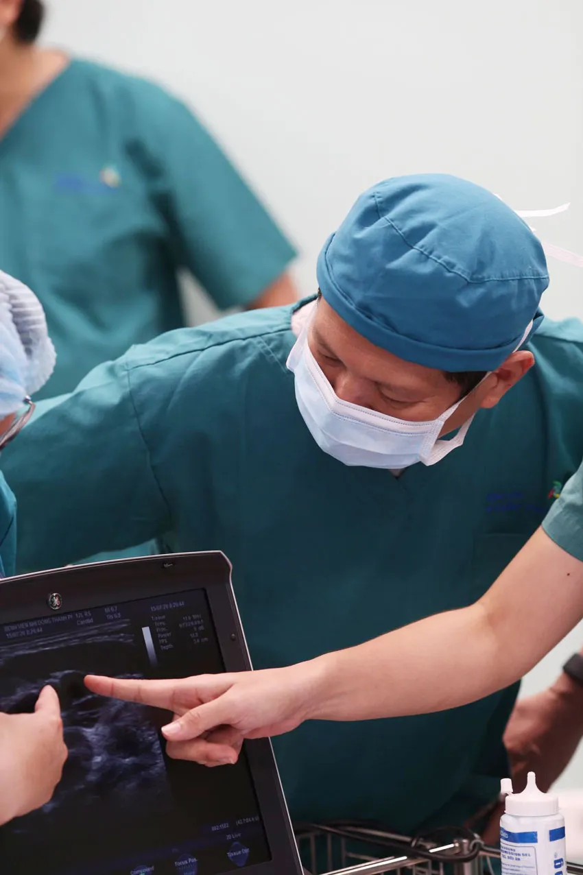 - 7 giờ 30 phút: Các nhóm phẫu thuật hội ý lần cuối trước mổ để xác định lại các phương án thực hiện, các giai đoạn phối hợp của các nhóm phẫu thuật viên.