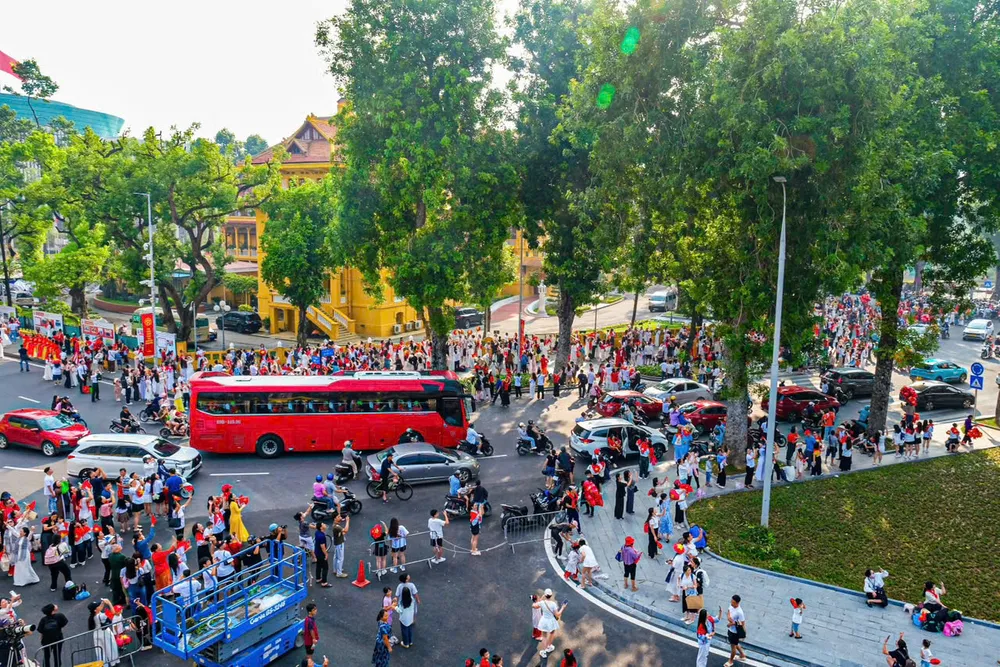 Đông đảo người dân đã tập hợp tại đường Hùng Vương và Quảng trường Ba Đình, Hà Nội từ sáng sớm để chờ xem cuộc tổng hợp luyện lần 2 lúc 20 giờ hôm nay.