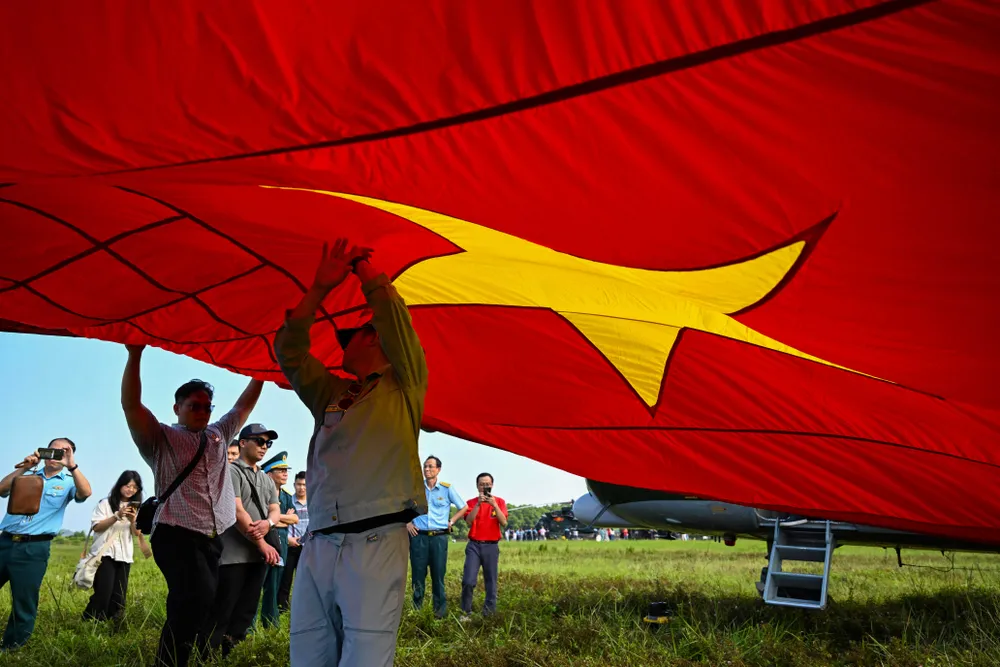 Sau khi hoàn thiện công tác kiểm tra kỹ thuật, đảm bảo an toàn bay, nạp nhiên liệu, điện và bay kiểm tra; các máy bay được treo cờ cờ Đảng và cờ Tổ quốc.