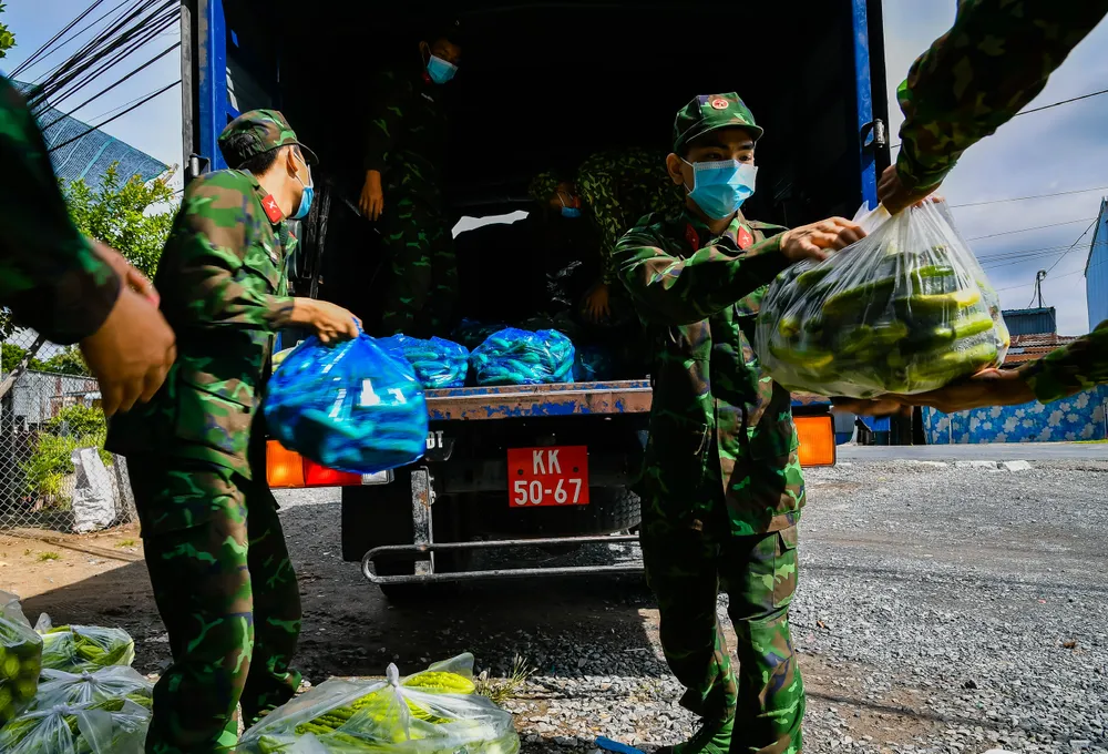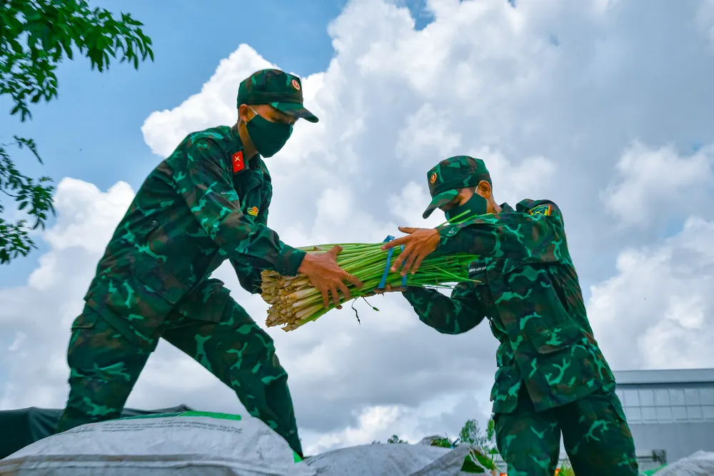Hơn 100 cán bộ, chiến sĩ Trung đoàn 320 đã hỗ trợ vận chuyển số nông sản này trao tặng cho người dân TPHCM gặp khó khăn do dịch Covid-19.
