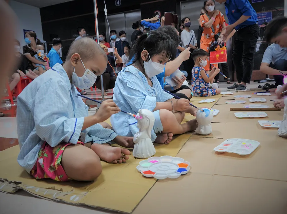 “Chúng tôi mong xoa dịu một phần nào nỗi đau bệnh tật, được nhìn thấy những nụ cười, được đem đến một mùa Trung thu ấm áp cho các em tại đây. Bởi các em là những chiến binh đang cố gắng từng ngày để vượt qua căn bệnh quái ác”, bác sĩ Bảo nói.