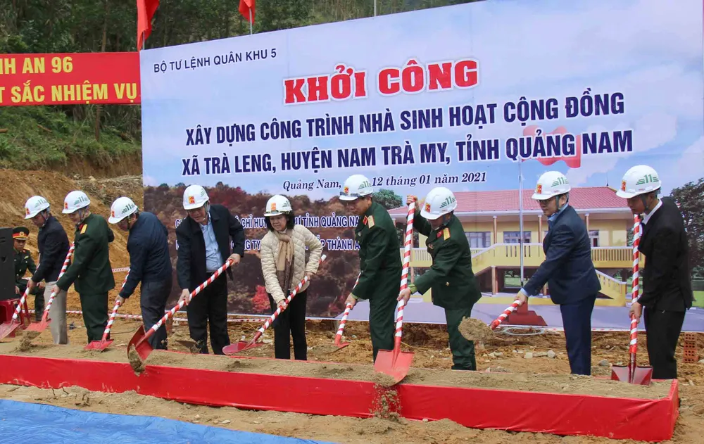 Cũng trong ngày 12-1, Quân khu 5 đã tổ chức lễ khởi công xây dựng Công trình nhà sinh hoạt cộng đồng xã Trà Leng, huyện Nam Trà My. Công trình này được thiết kế kiểu nhà sàn 2 tầng, tầng 1 có diện tích 220m², tầng 2 có diện tích 182m² có tổng kinh phí gần 3 tỷ đồng. Dự kiến sau 60 ngày, công trình được hoàn thành và đưa vào sử dụng, vừa là nơi sinh hoạt cộng đồng vừa là nơi phòng chống thiên tai hằng năm cho người dân.