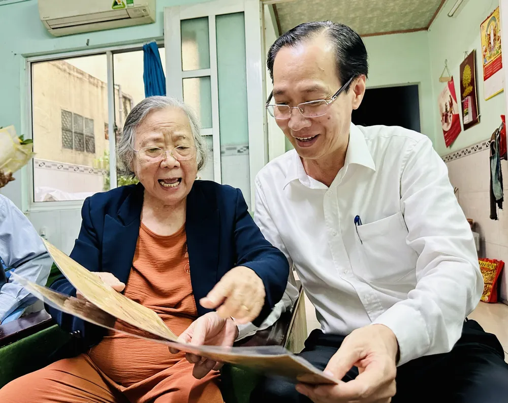 Tại nhà riêng hai cụ, Trưởng Ban Nội chính Thành ủy TPHCM ân cần thăm hỏi sức khỏe, chế độ ăn uống, sinh hoạt của cụ Phương và cụ Đáng.