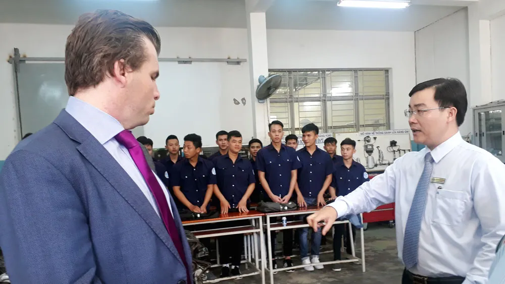 Bà Nguyễn Thị Thu Trang, Chủ tịch HĐTV Công ty Tân Cảng - STC cho biết rất ấn tượng trước cơ sở vật chất được nhà trường đầu tư khá đồng bộ, đặc biệt là chủ trương đào tạo gắn trường học với doanh nghiệp, cho sinh viên tham gia học tập, vận hành máy móc thực tế rất phù hợp với các yêu cầu nguồn nhân lực chất lượng cao của Công ty. Tiêu biểu là mô hình "đào tạo kép" thực hiện học tập tại doanh nghiệp 70% khối lượng chương trình sẽ giúp sinh viên sau khi tốt nghiệp thích ứng nhanh với công việc và đơn vị chỉ cần tập huấn thêm khoảng 2 tuần thay vì đào tạo lại từ 6 đến 8 tháng như trước đây.