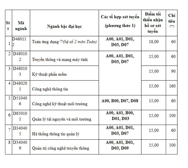 + Các tổ hợp A00, B00: ưu tiên môn Toán.