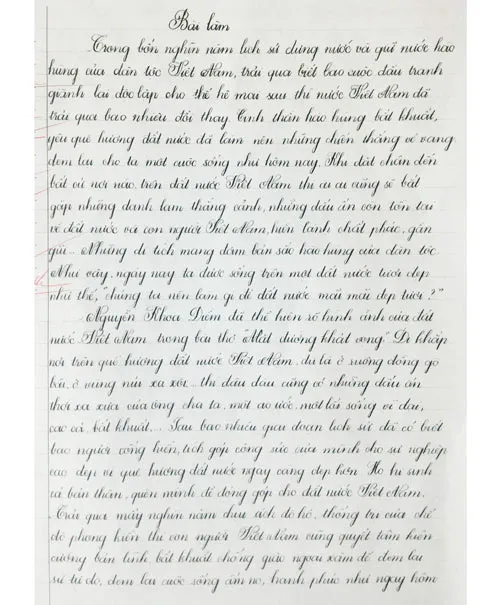 Bài thi đoạt giải Nhất của khối lớp 8-9. Ảnh: H.L