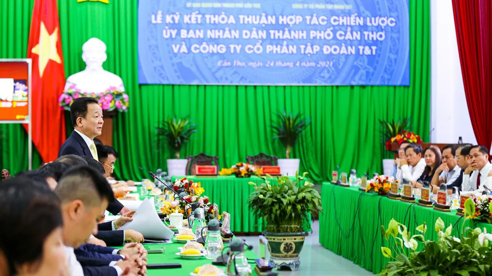 Phát biểu tại lễ ký kết, ông Trần Việt Trường, Chủ tịch UBND TP Cần Thơ cho biết, theo Nghị quyết số 59-NQ/TƯ ngày 5-8-2020 của Bộ Chính trị, thành phố Cần Thơ đặt mục tiêu xây dựng và trở thành trung tâm của vùng ĐBSCL về dịch vụ thương mại, du lịch, logistics, công nghiệp chế biến nông nghiệp ứng dụng công nghệ cao, giáo dục đào tạo, y tế chuyên sâu... Chính vì thế, những đề xuất nghiên cứu, lập quy hoạch và đầu tư các dự án của T&T Group hoàn toàn phù hợp với định hướng phát triển của thành phố.