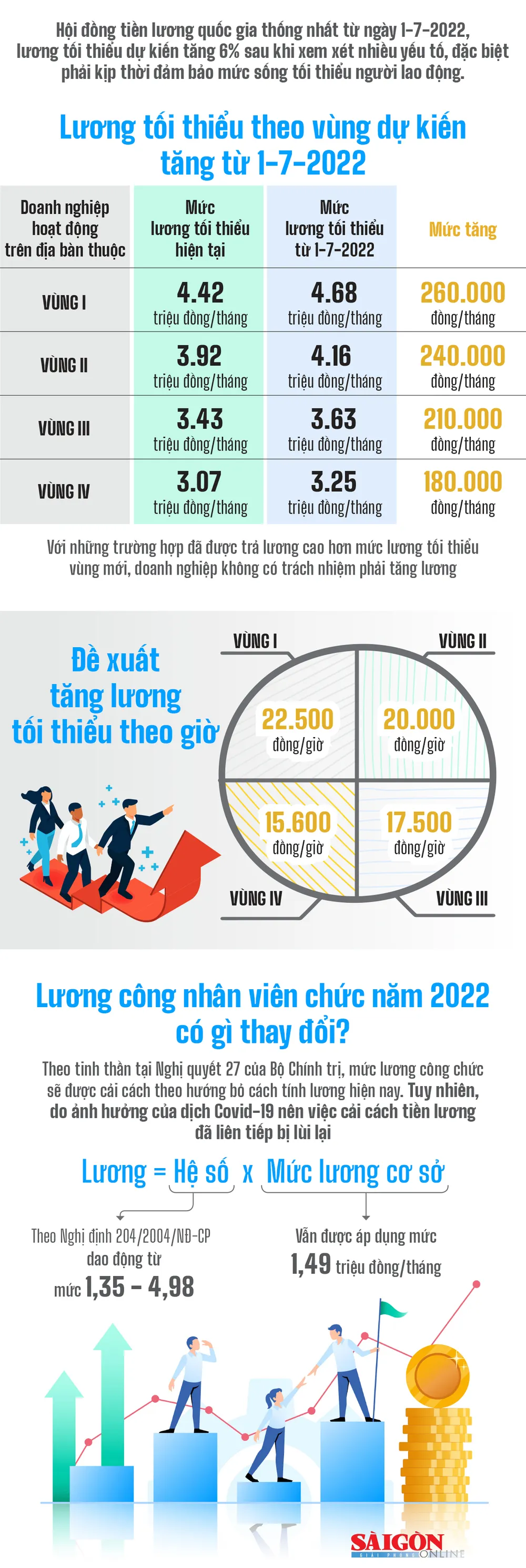 Hội đồng Tiền lương quốc gia thống nhất từ ngày 1-7-2022, lương tối thiểu vùng dự kiến tăng 6% sau khi xem xét nhiều yếu tố, đặc biệt phải kịp thời đảm bảo mức sống tối thiểu người lao động.