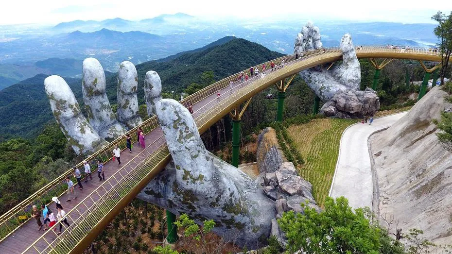 Hình ảnh đôi bàn tay bằng đá khổng lồ, rêu phong đỡ lấy cây cầu mềm mại như dải lụa vàng được rút ra từ lòng núi đã được giới truyền thông quốc tế mô tả bằng hàng loạt những mỹ từ, những ví von.