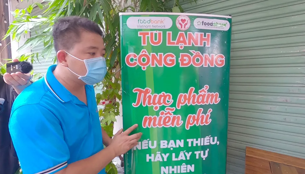 Mô hình “Tủ lạnh cộng đồng” cho thực phẩm miễn phí. Clip: ĐÌNH DƯ