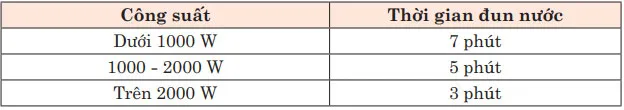 - Ấm đun nước siêu tốc có công suất càng lớn thì tốc độ đun sôi nước càng nhanh: