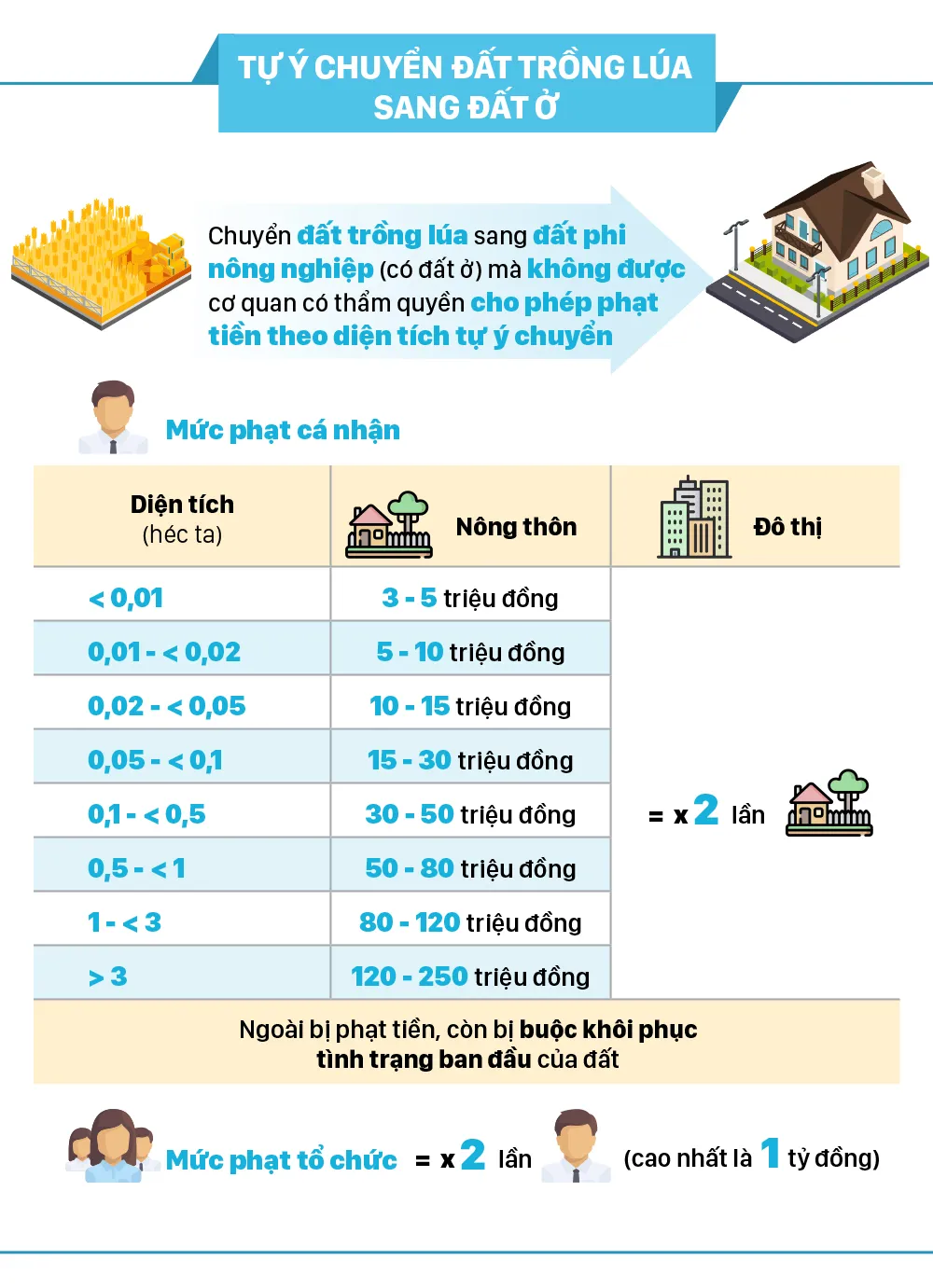 Tự ý chuyển đất trồng lúa sang đất ở phạt tiền tới 1 tỷ đồng