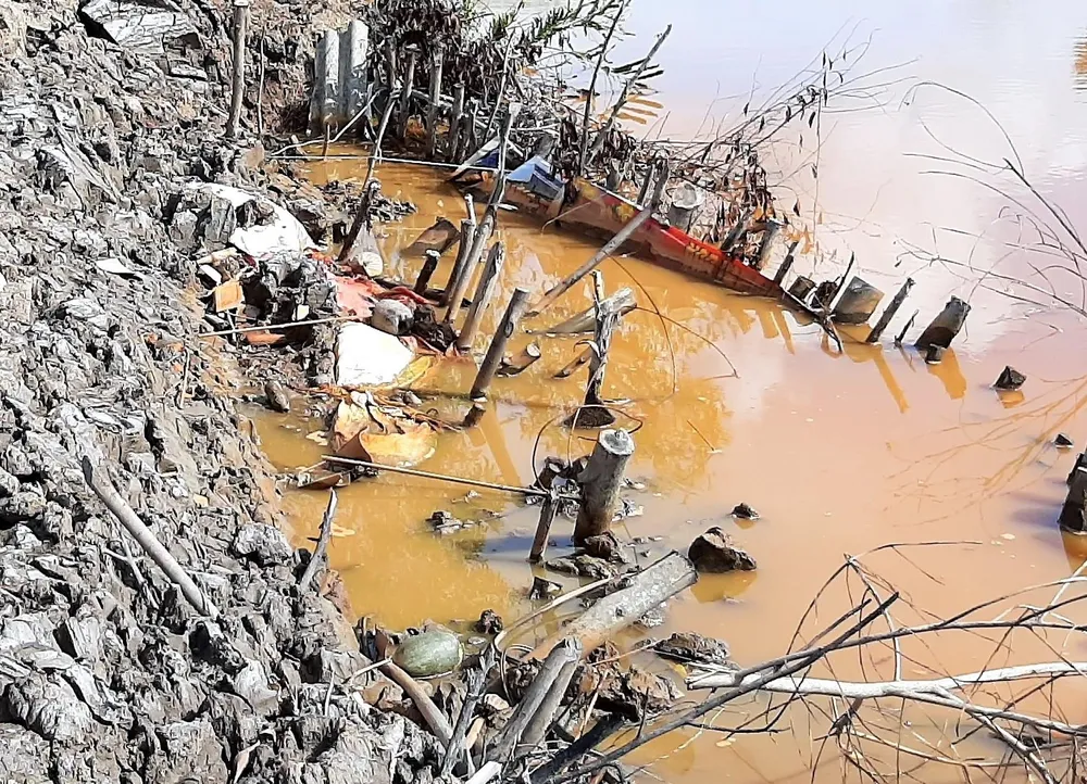 Trước đó, gia đình ông Kiếm cho cơ giới vào khai thác đất dưới kênh thủy lợi trái phép làm bể bờ vuông tôm, ảnh hưởng sinh kế của của gia đình của gia đình hộ dân.