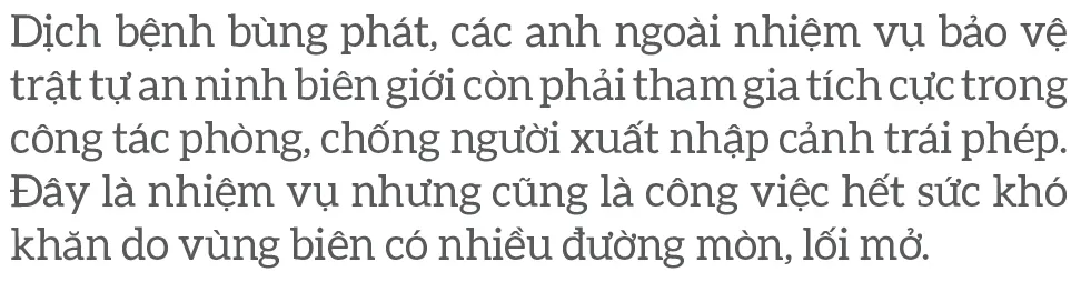 Bên cạnh nhiệm vụ chính đảm bảo trật tự an ninh biên giới, bảo vệ chủ quyền toàn vẹn lãnh thổ, các chiến sĩ mang quân hàm xanh tại các Đồn Biên phòng Trịnh Tường, A Má Sung, Y Tý, Sì Lở Lầu (thuộc các tỉnh Lào Cai và Lai Châu) còn phải ngày đêm căng mình tuần tra, kiểm soát với quyết tâm cùng cả nước phòng, chống, ngăn chặn và đẩy lùi dịch bệnh Covid-19.