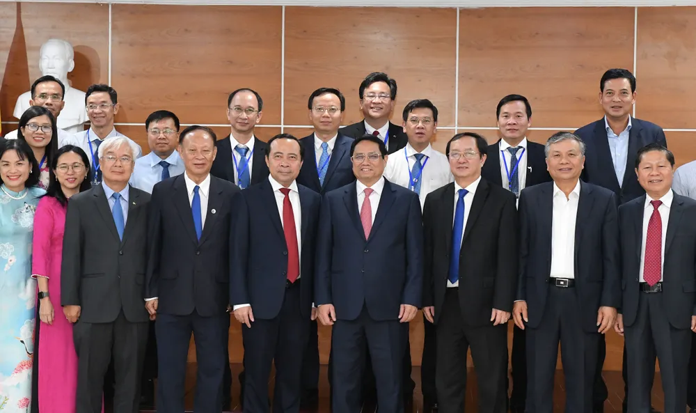 Thủ tướng Phạm Minh Chính cùng thầy cô và sinh viên Đại học Quốc gia TPHCM. Ảnh: VIỆT DŨNG |