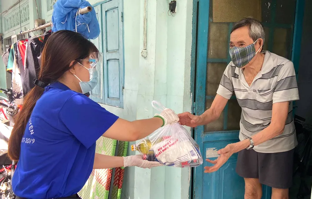 Tặng thực phẩm, thăm hỏi, tuyên truyền phòng chống dịch đến người cao tuổi